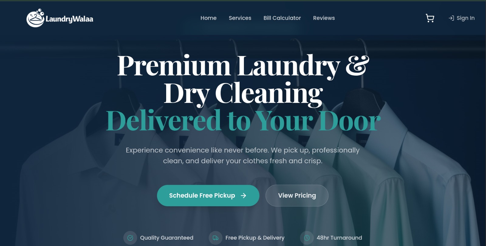 LaundryWalaa is a laundry service platform built with React, Tailwind CSS, and Node.js. The platform is designed to provide laundry services to customers and features a user-friendly interface for booking and tracking laundry orders.